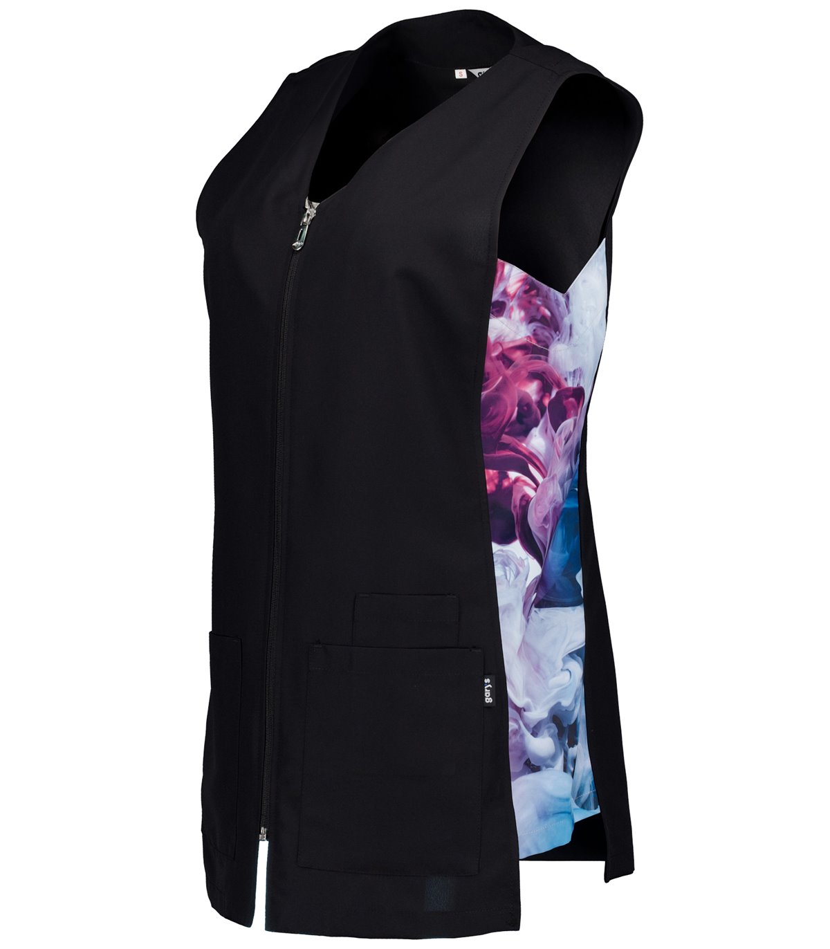 Esta blusa es imprescindible en el vestuario laboral para peluqueros, peluqueras, barberos, barberas, recepcionistas de peluquería y trabajadores de spa combina estilo y comodidad. Con un atractivo diseño sin mangas y escote en pico, su cremallera central agrega practicidad y un toque estilizado.