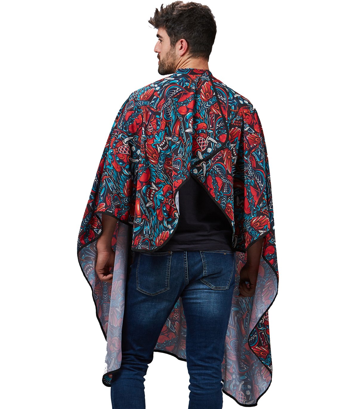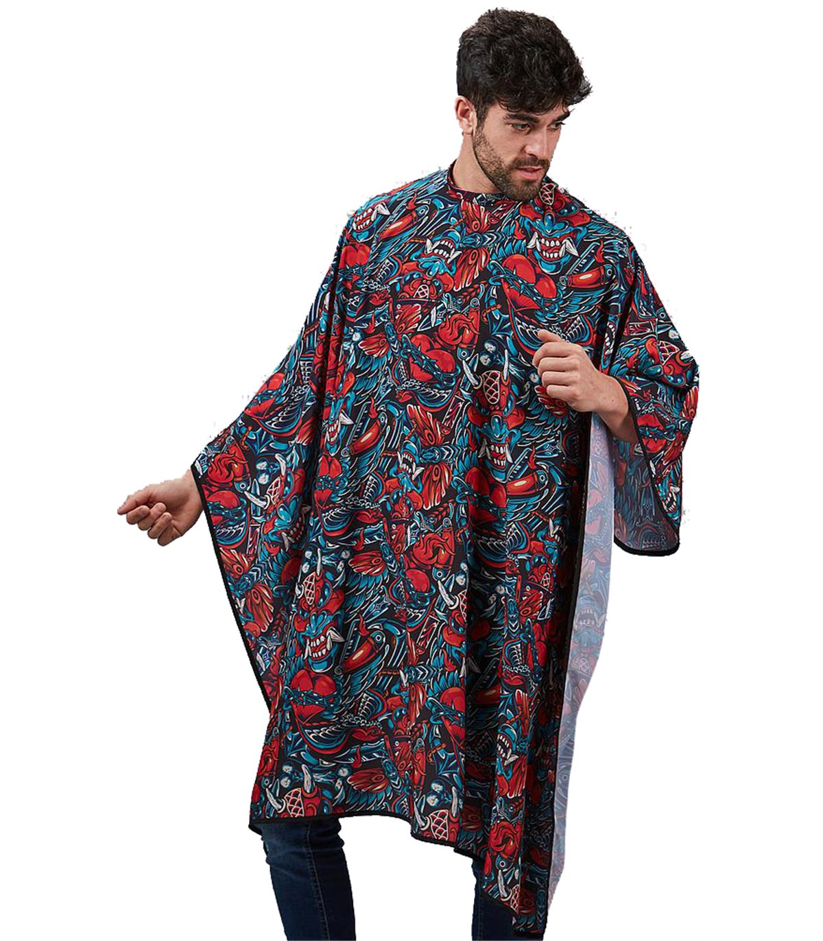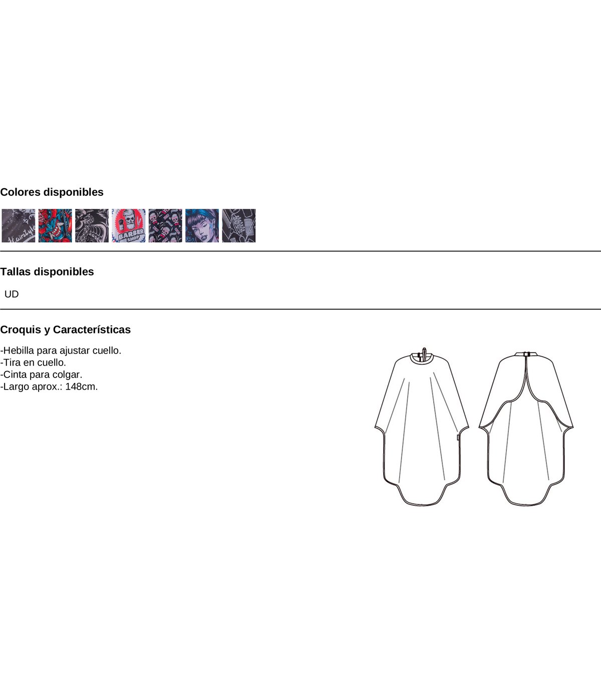 Capa peluquería Infierno 350001. La fusión perfecta entre estilo y funcionalidad con nuestra Capa de Peluquería Estampada, diseñada para profesionales que buscan destacar en el mundo de la belleza.