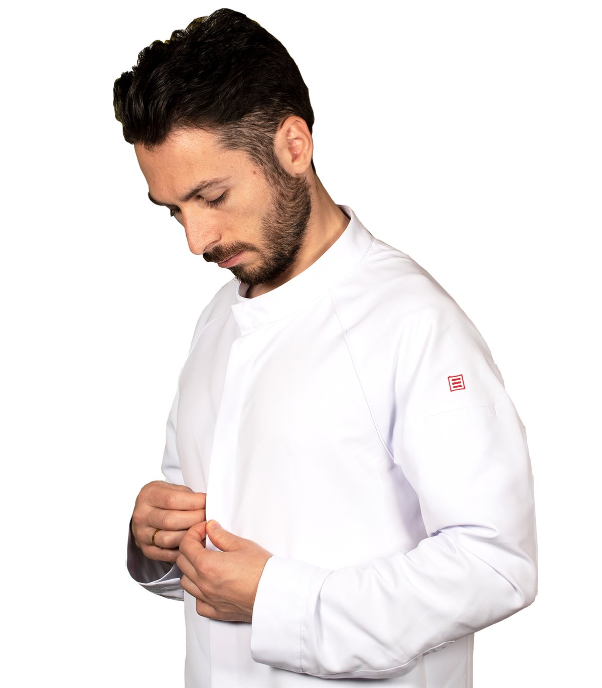 Chaqueta cocina unisex Gastro Chef Tyr 930028. Chaqueta GASTROCHEF unisex en manga larga, con cuello mao, cierre central mediante botones de presión ocultos y con bolsillo en manga izquierda.