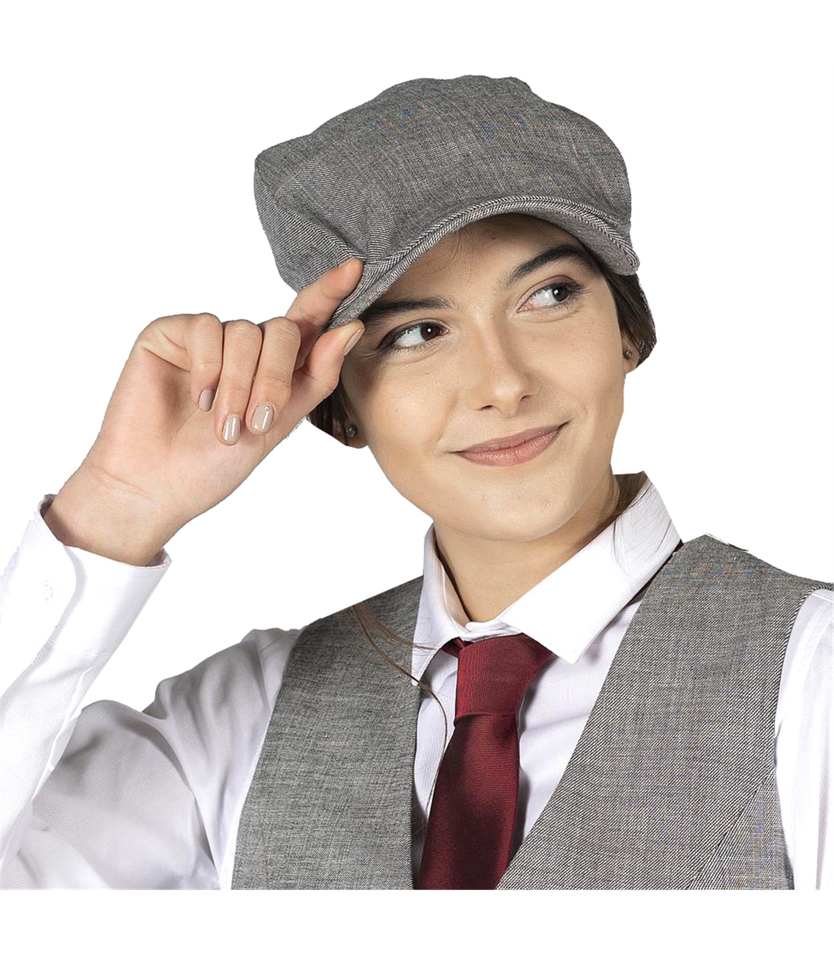 Gorra unisex boina Cheviot 410002. Gorra unisex tipo boina, con visera rígida y elástico oculto en parte trasera para ajustar. Confeccionada en tejido CHEVIOT de color gris y forro estampado.