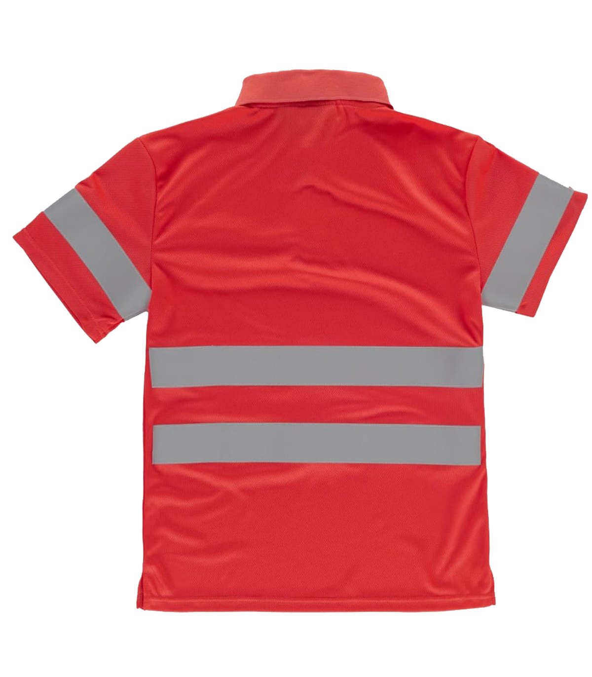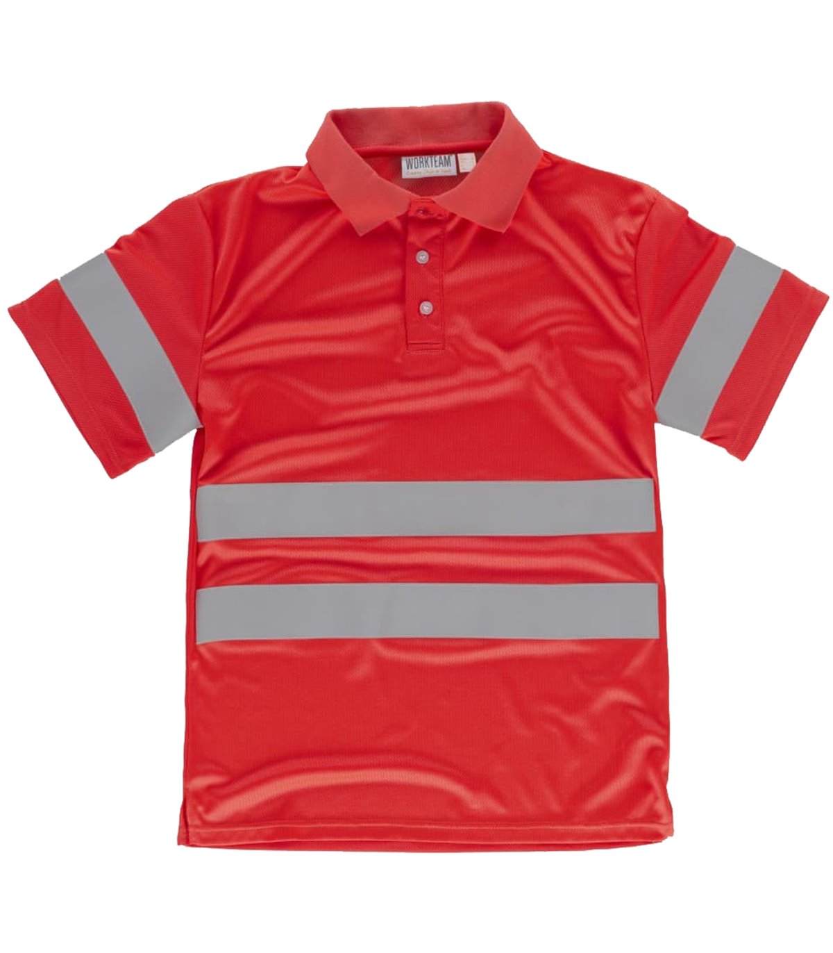 Polo de Alta Visibilidad Workteam C3887. Polo de alta visibilidad de manga corta en poliéster ojo de perdiz con cintas reflectantes. Tejido fresco y ligero de alta permeabilidad al aire. Transpirable, de fácil secado y resistente al encogimiento.